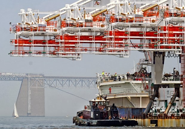 L'évolution est tellement rapide que certains ports, et pas forcément les moins performants, sont obligés de faire appel à des méga bateaux grues pour décharger les porte containers qui font escale chez eux - voir par exemple Miami, là.
